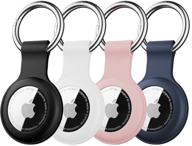This durable, IPX8 waterproof AirTag case offers 360° protection and comes with four colorful cases and keychains for versatile use. (AirTags not included.)